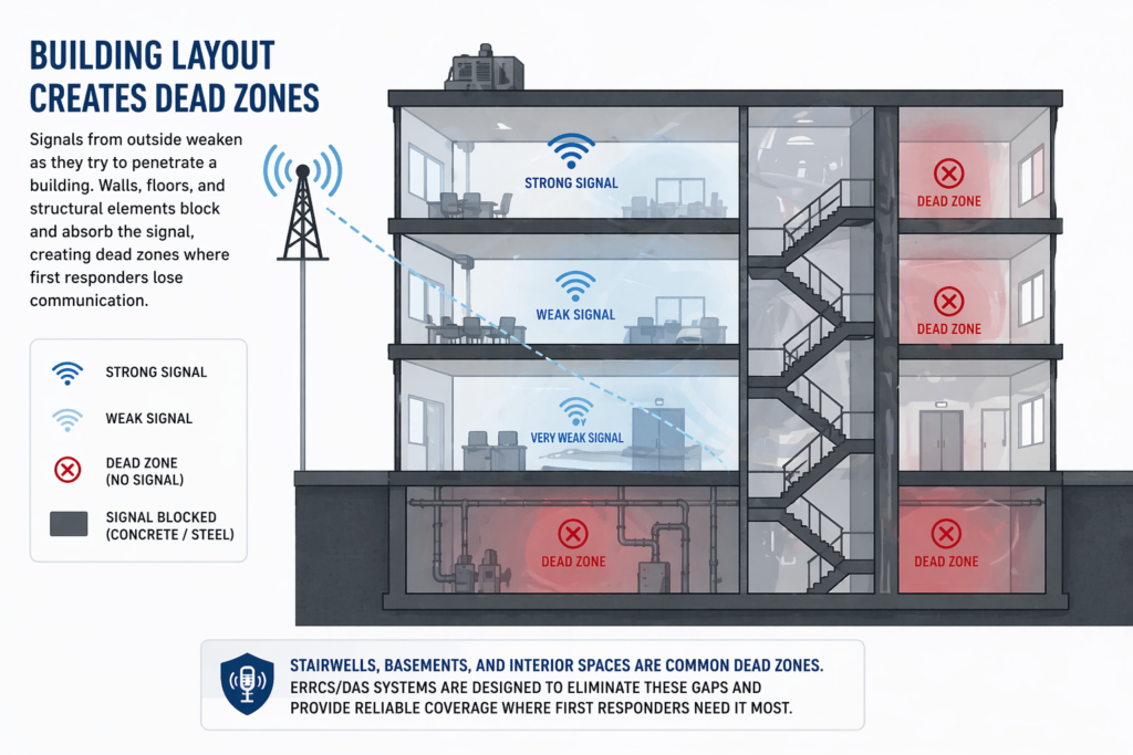 It’s a common and serious issue. First responders often experience dropped signals, dead zones, or complete communication failure once they enter a structure. This isn’t a rare occurrence or an edge case. It’s a predictable result of how modern buildings are designed and constructed.